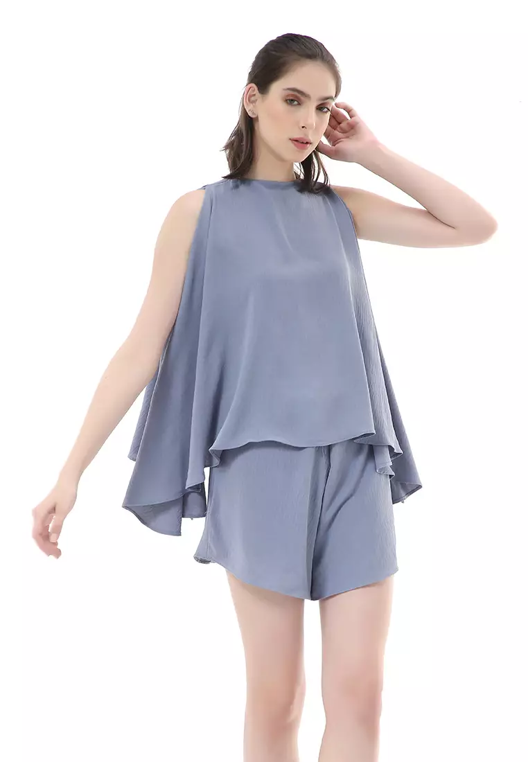HamlinNayra One Set Setelan Wanita Sleeveless Blouse with Short Pants Plain Motive Material Crepe Crinkle ORIGINAL - Bluegray1962500.00745750.00