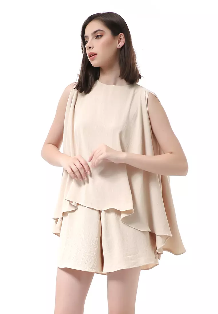 Nayra One Set Setelan Wanita Sleeveless Blouse with Short Pants Plain Motive Material Crepe Crinkle ORIGINAL - Cream