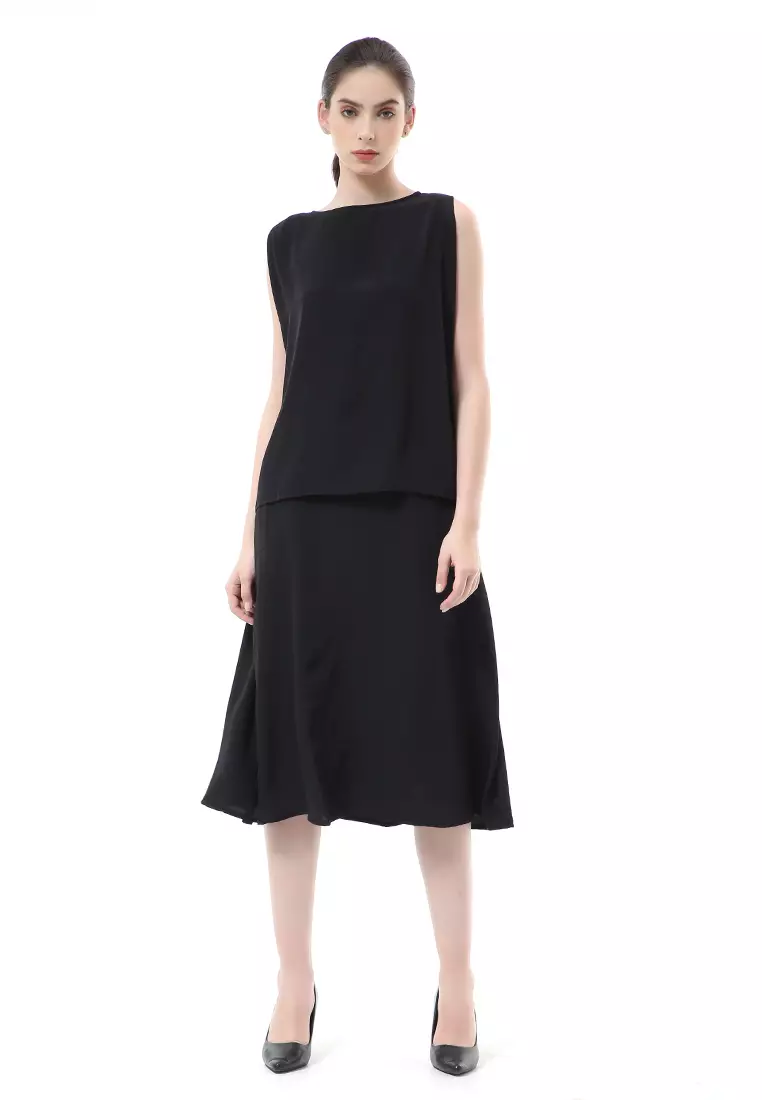 HamlinNayra Set Atasan Wanita Setelan Tanpa Lengan with Long Skirt Motif Polos Material Chiffon Cathy ORIGINAL - Black2617500.001047000.00