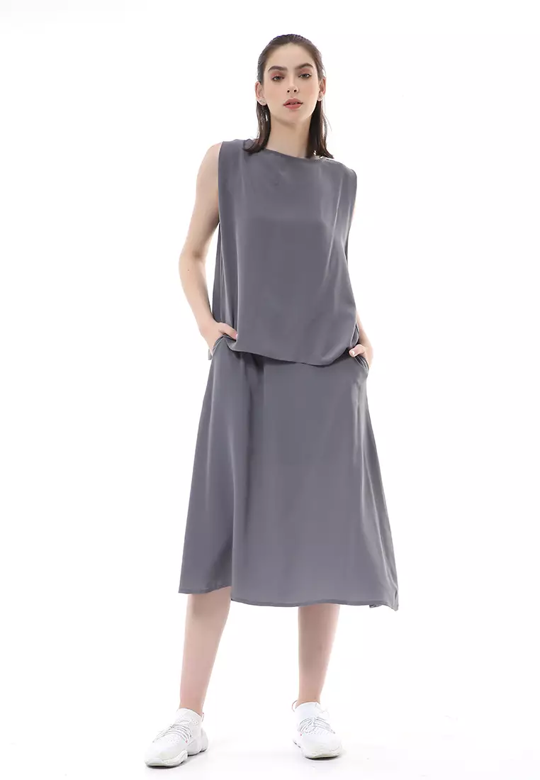 HamlinNayra Set Atasan Wanita Setelan Tanpa Lengan with Long Skirt Motif Polos Material Chiffon Cathy ORIGINAL - Dusty Blue2617500.001047000.00