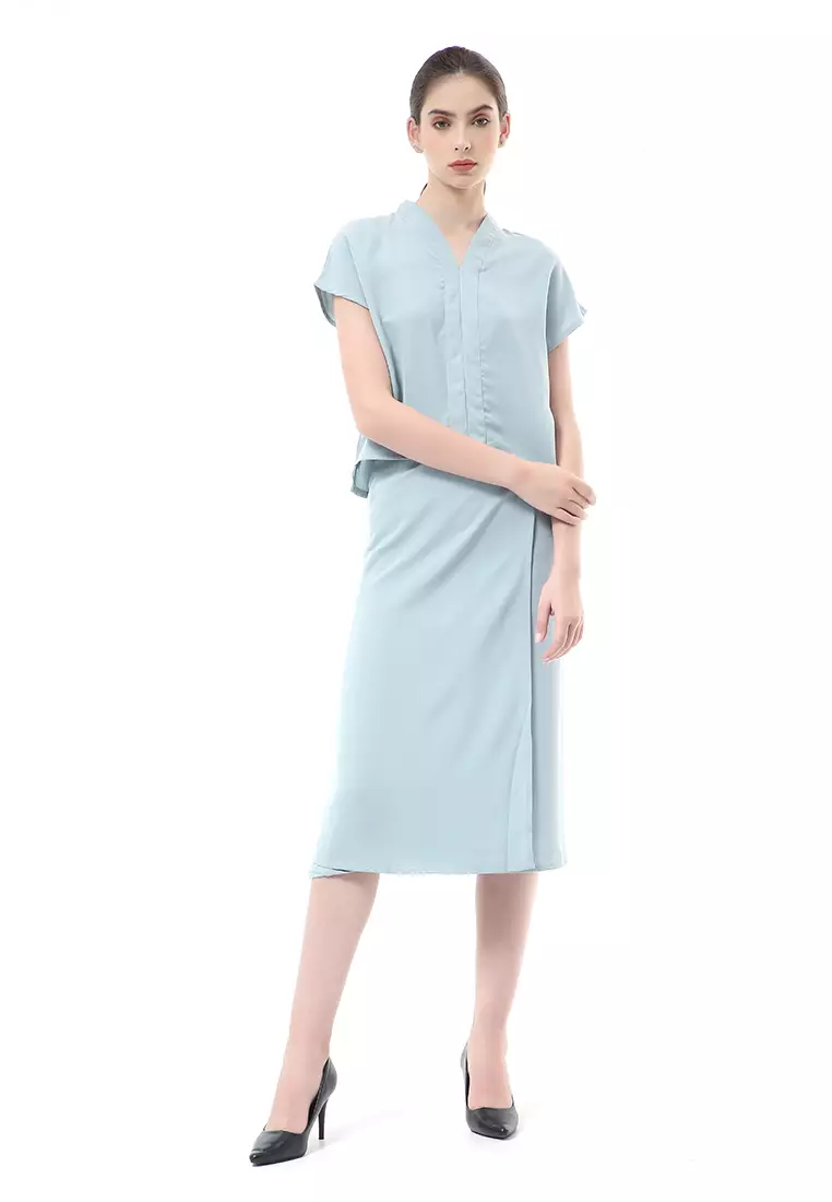 Nayra Setelan Baju & Rok Wanita One Set Adjustable Short Sleeve Material Dolce ORIGINAL - Blue Mint