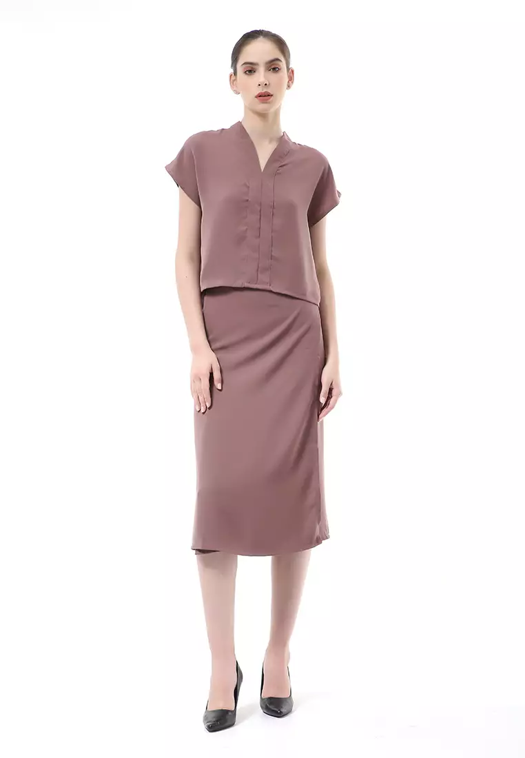 Nayra Setelan Baju & Rok Wanita One Set Adjustable Short Sleeve Material Dolce ORIGINAL - Chocolate