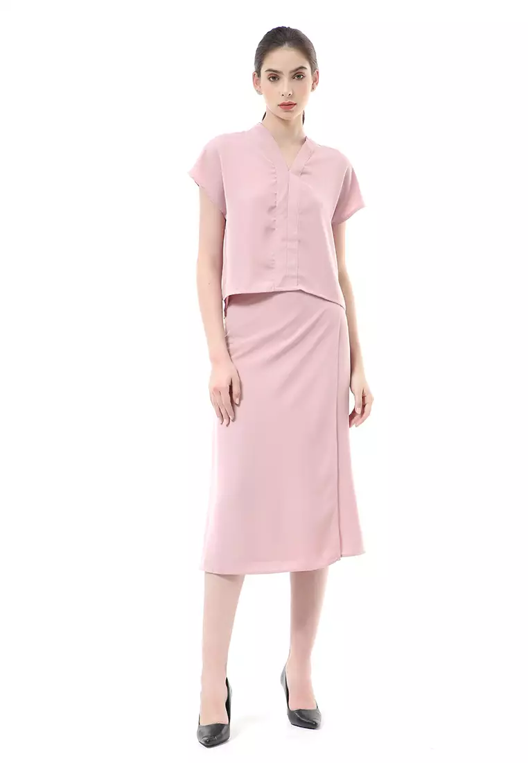 Nayra Setelan Baju & Rok Wanita One Set Adjustable Short Sleeve Material Dolce ORIGINAL - Soft Pink