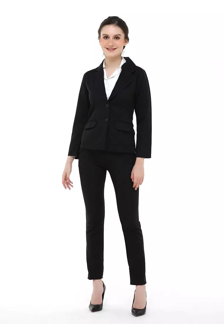 HamlinNicrely Setelan Blazer Celana Wanita One Set Longsleeve Suit Long Pant Material Semi Stretch ORIGINAL - Black2050000.00820000.00