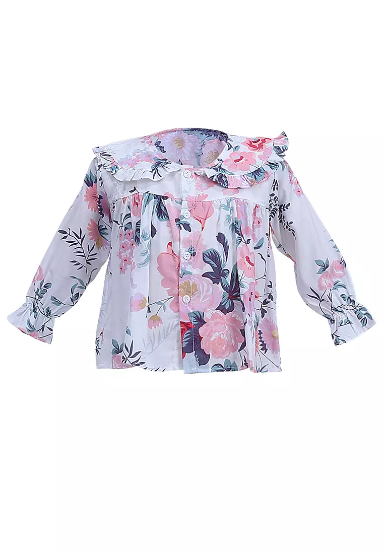 Octavia Atasan Anak Perempuan Blouse Remple Lengan Panjang Motif Daun Material Cotton ORIGINAL - Multicolor