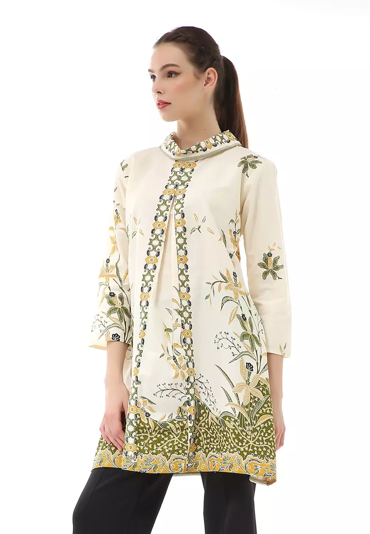 HamlinOlaf Atasan Batik Wanita Tunik Traditional Motive Elegant Design Material Cotton ORIGINAL - White Green1885000.00754000.00