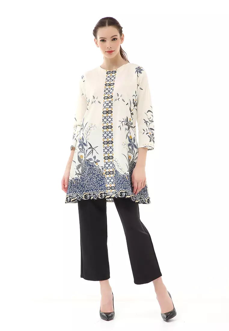 HamlinOlaf Atasan Batik Wanita Tunik Traditional Motive Simple Design Material Cotton ORIGINAL - White Blue1885000.00754000.00