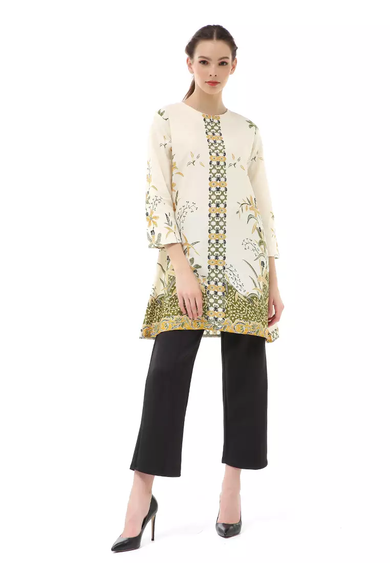 HamlinOlaf Atasan Batik Wanita Tunik Traditional Motive Simple Design Material Cotton ORIGINAL - White Green1885000.00754000.00