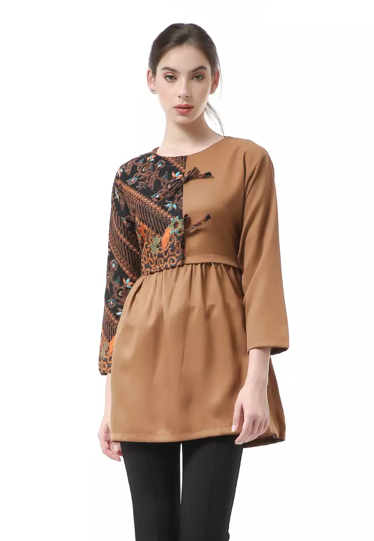 Olaf Atasan Wanita Batik Kerja Elegant Design Material Cotton ORIGINAL - Brown