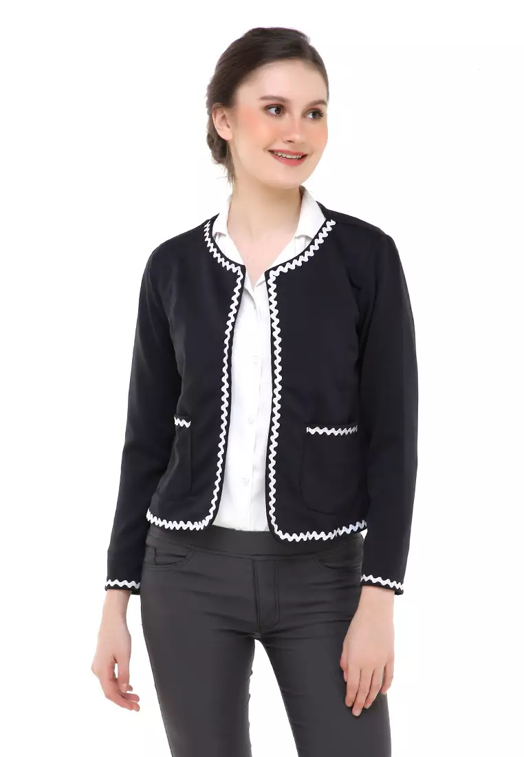 Qemsya Blazer Wanita Lace Motives Formal Suit Material Scuba ORIGINAL - Black
