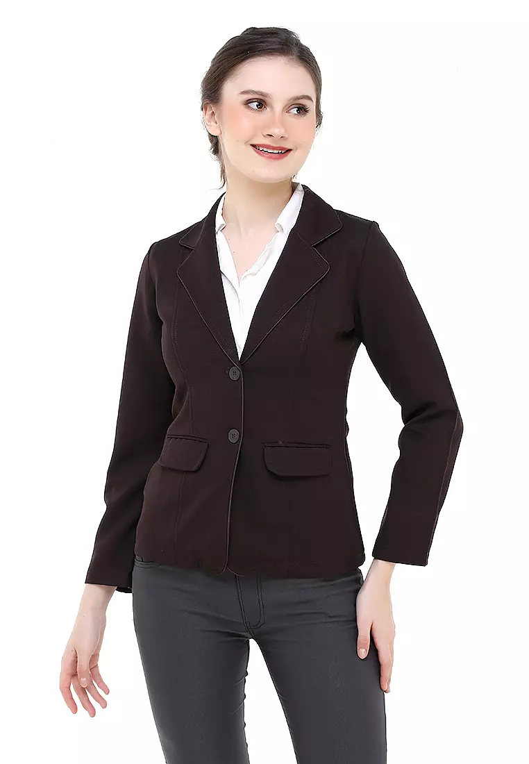 Qemsya Jas Blazer Wanita Korean Style Formal Longsleeve Suit Material Polyester ORIGINAL - Dark Brown