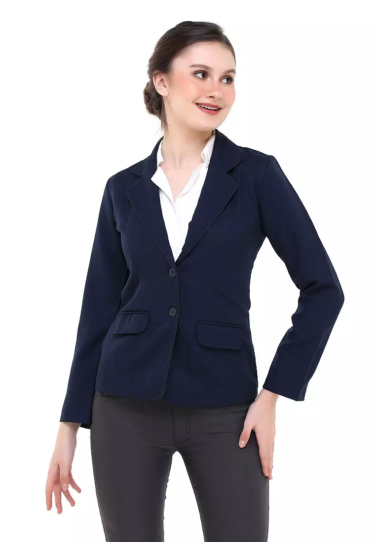 Qemsya Jas Blazer Wanita Korean Style Formal Longsleeve Suit Material Polyester ORIGINAL - Navy