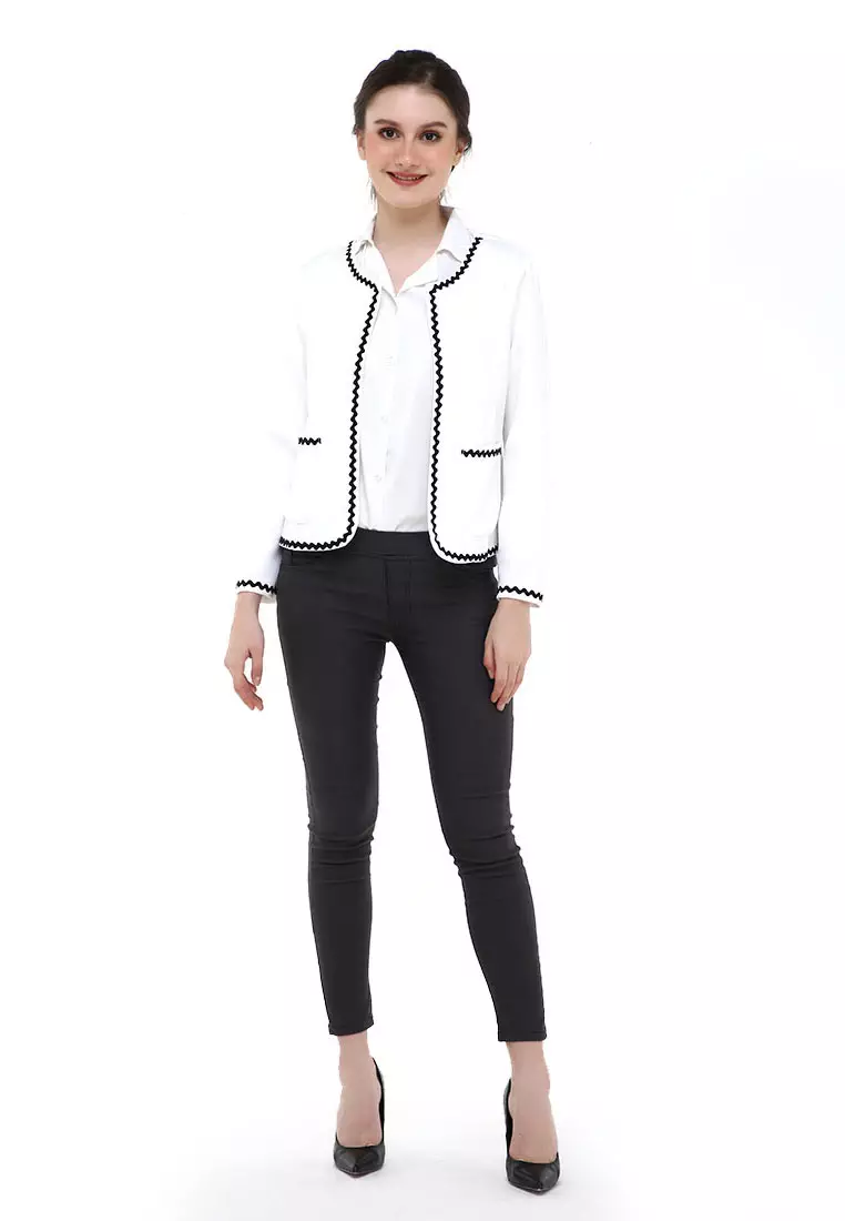 Qemsya Jas Blazer Wanita Lace Motives Formal Longsleeve Suit Material Scuba ORIGINAL - White