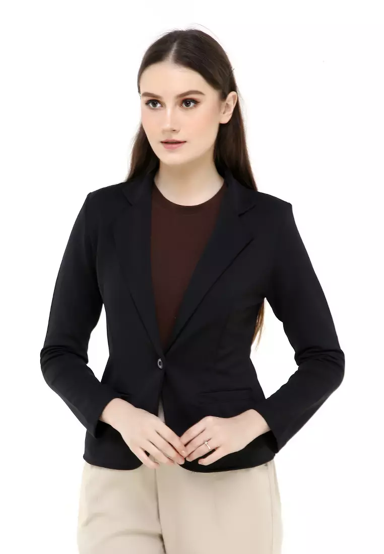 HamlinQemsya Jas Blazer Wanita One Botton Slim Fit Formal Longsleeve Suit Material Scuba ORIGINAL - Black1952500.00781000.00
