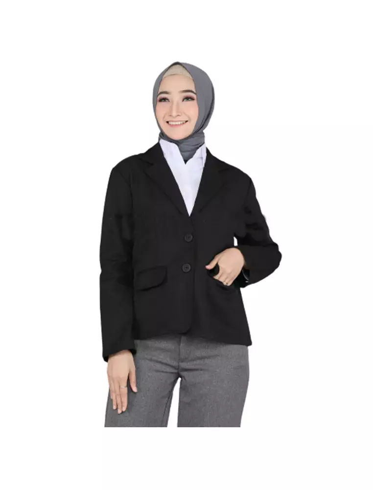 Qemsya Jas Blazer Wanita Premium Formal Longsleeve Suit Material Polyester ORIGINAL - Black