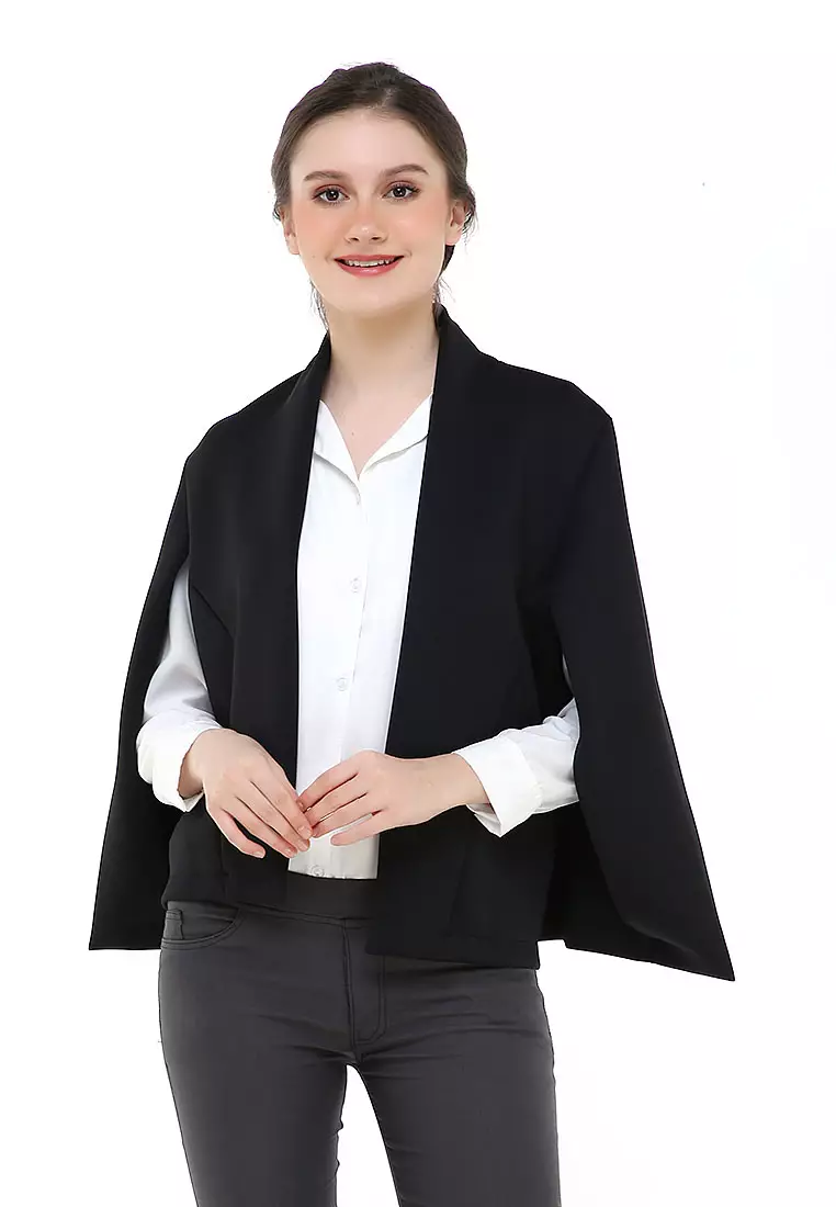 HamlinQemsya Jas Wanita Cape Blazer Casual Plain Outer Material Scuba ORIGINAL - Black1455000.00582000.00