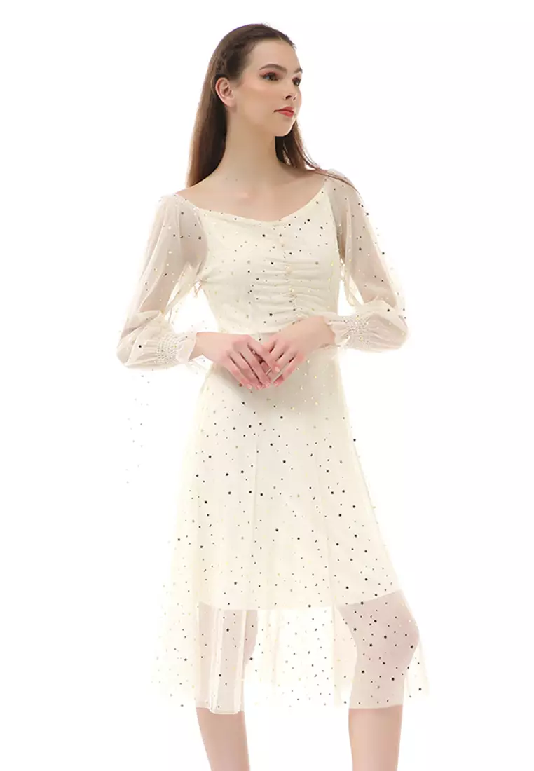 HamlinRachel Dress Fashion Wanita Lengan Panjang Stylish Design Material Brukat ORIGINAL - Cream3637500.001455000.00
