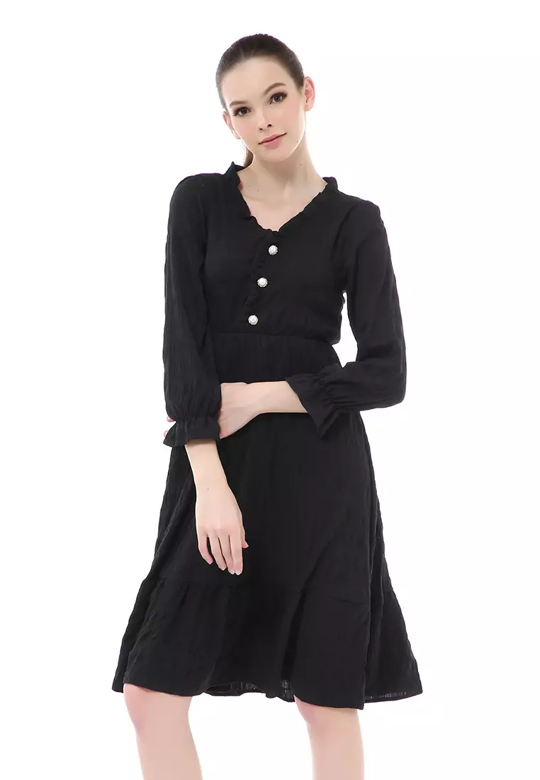 Rachel Dress Kasual Wanita Lengan Panjang Model Simple Material Chiffon ORIGINAL - Black