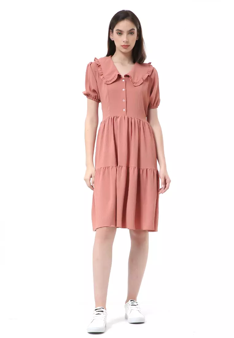 HamlinRachel Dress Rample Wanita Collar Vintage Button Layer Trap Lengan Pendek Material Cey Flow ORIGINAL - Thai Tea1955000.00782000.00