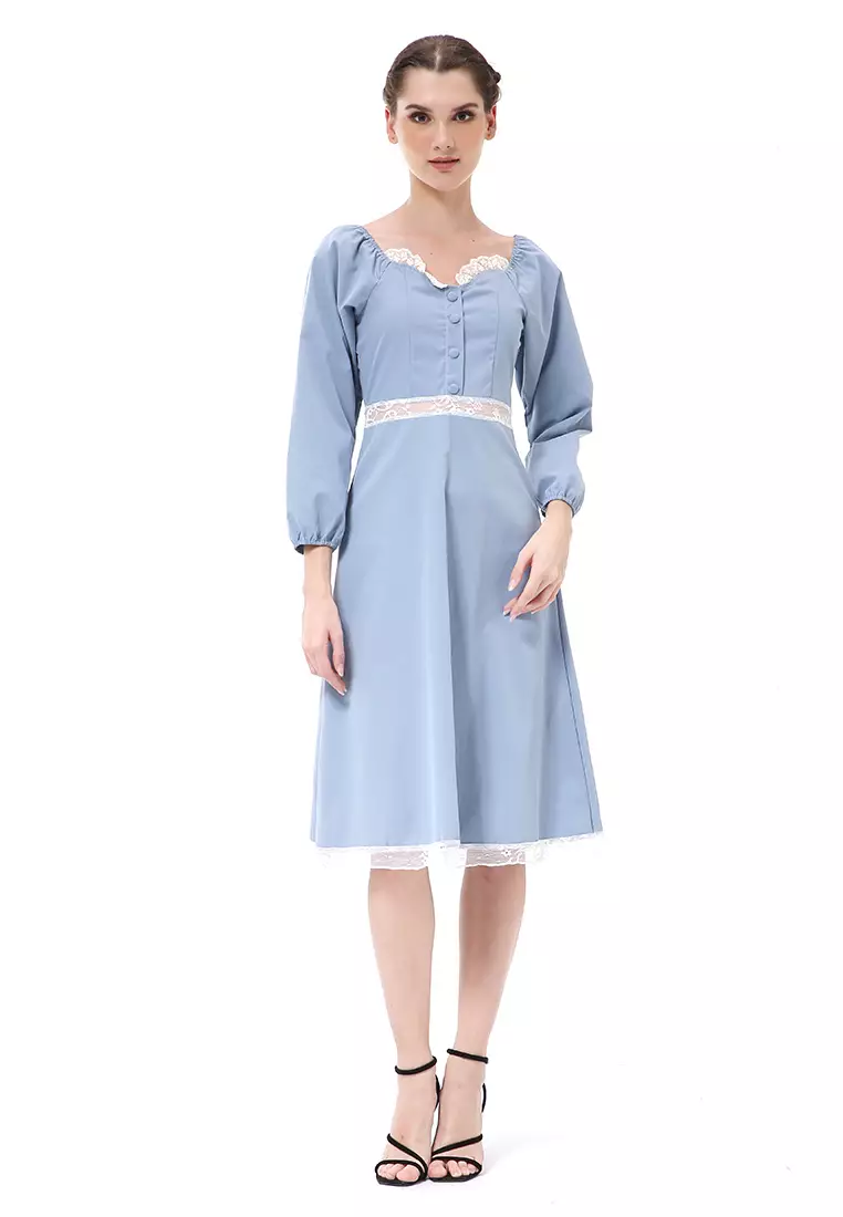 HamlinRachel Dress Retro Vintage Wanita Long Sleeve Simple Elegan Material Cotton ORIGINAL - Sky Blue1982500.00793000.00