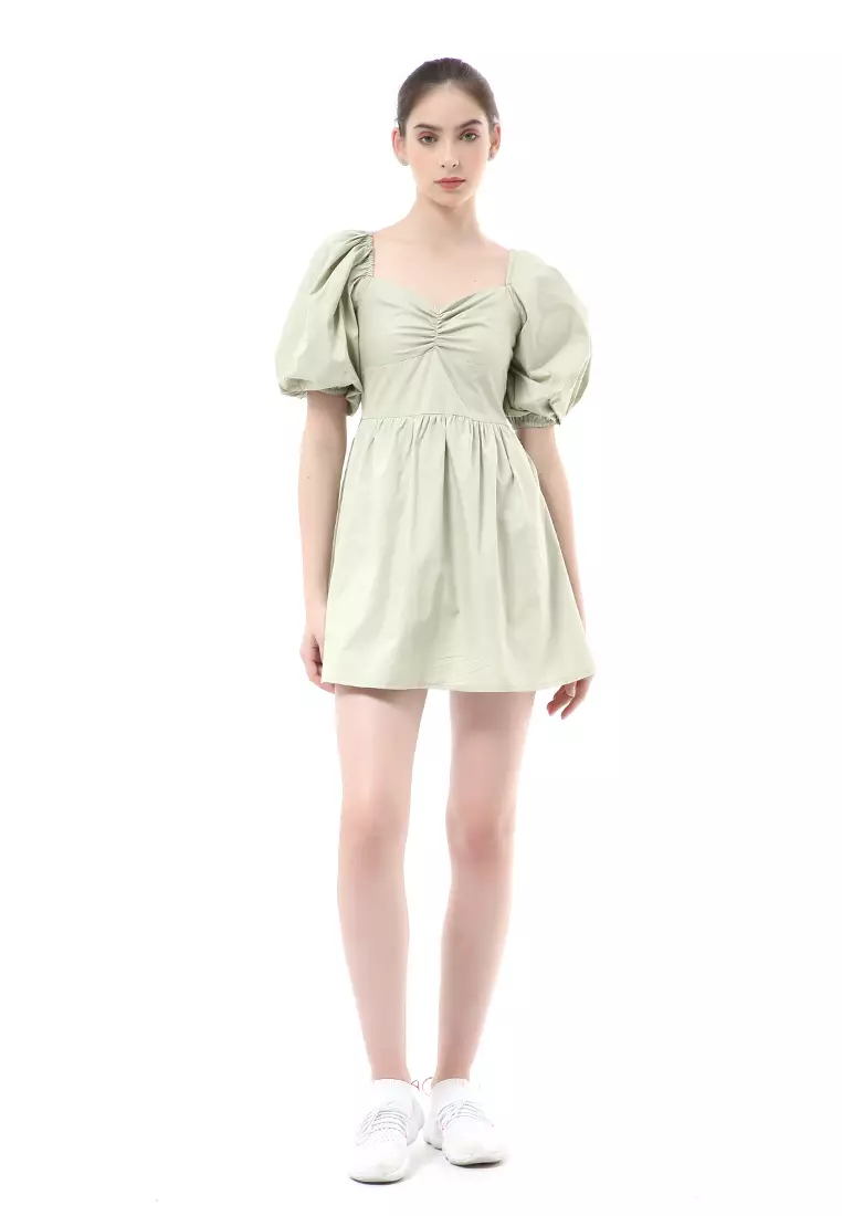 Rachel Dress Wanita Ballerina Pluffy Baloon Sleeve Simple Elegant Material Cotton ORIGINAL - Soft Green