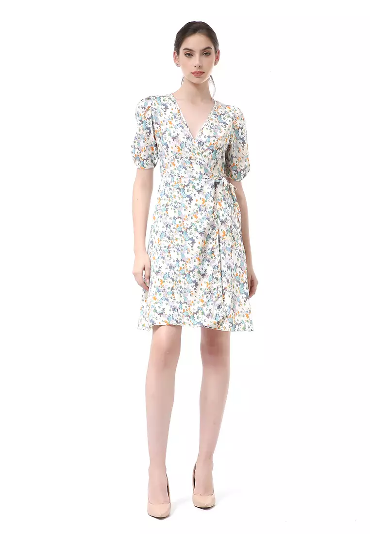 Rachel Dress Wanita Lengan Karet Flower Motive Model Belah Samping Material Cotton ORIGINAL - Multicolor