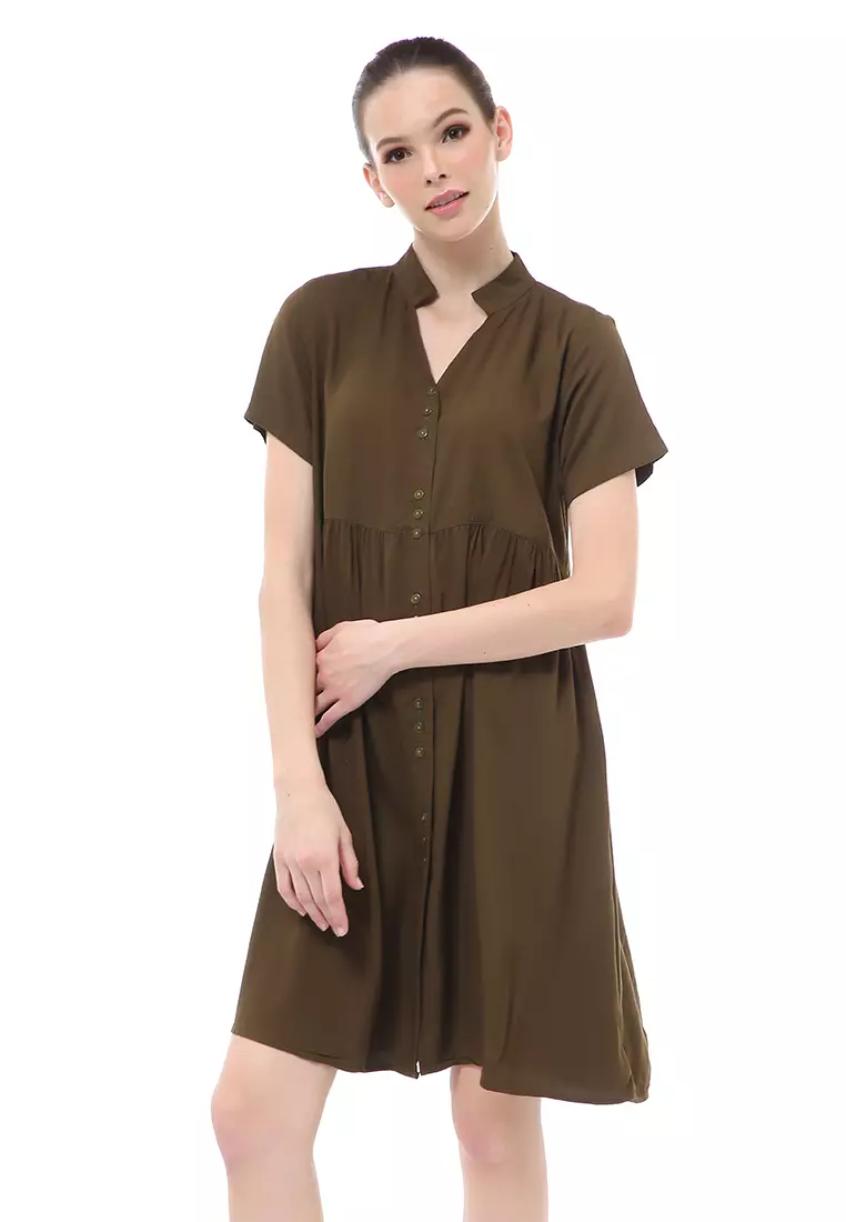 HamlinRachel Dress Wanita Lengan Pendek Full Kancing Stylish Material Cotton ORIGINAL - Army Green2020000.00808000.00