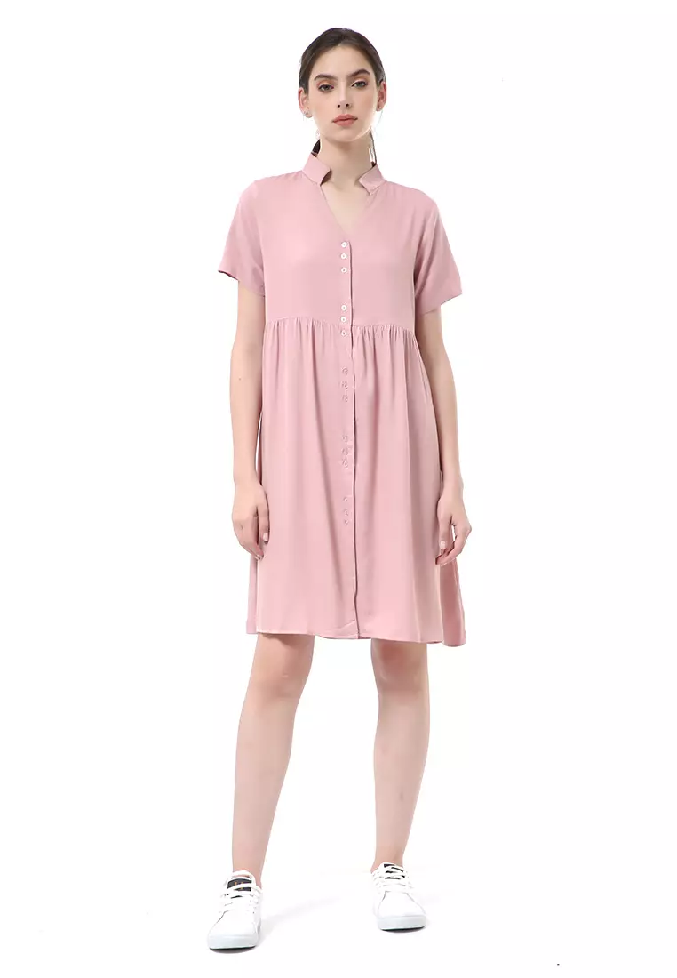 HamlinRachel Dress Wanita Lengan Pendek Full Kancing Stylish Material Cotton ORIGINAL - Dusty Pink2020000.00808000.00