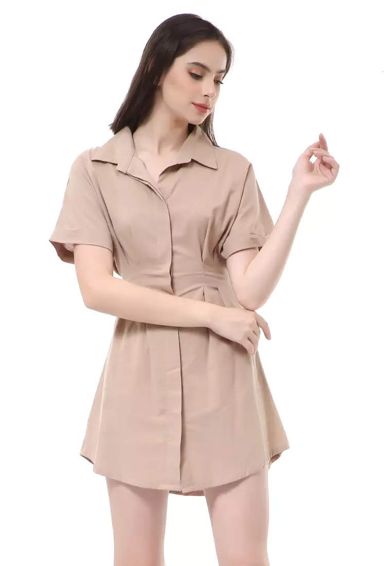 HamlinRachel Dress Wanita Lengan Pendek Model Kemeja Plain Motive Material Cotton ORIGINAL - Brown2047500.00819000.00
