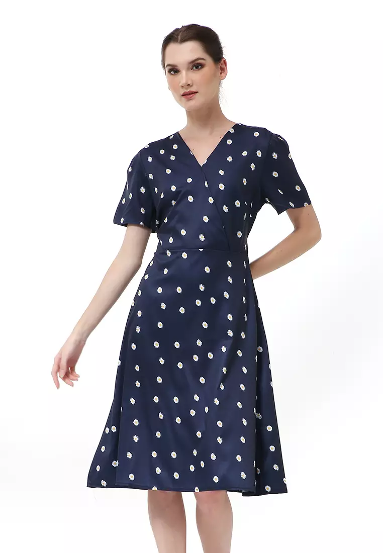HamlinRachel Dress Wanita Lengan Pendek Motif Polka Material Chiffon ORIGINAL - Dark Blue2105000.00842000.00