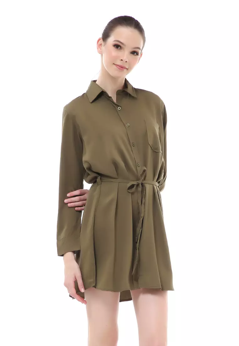 HamlinRachel Dress Wanita Model Kemeja Full Kancing Long Sleeve Material Twill Rayon ORIGINAL - Army Green2047500.00819000.00