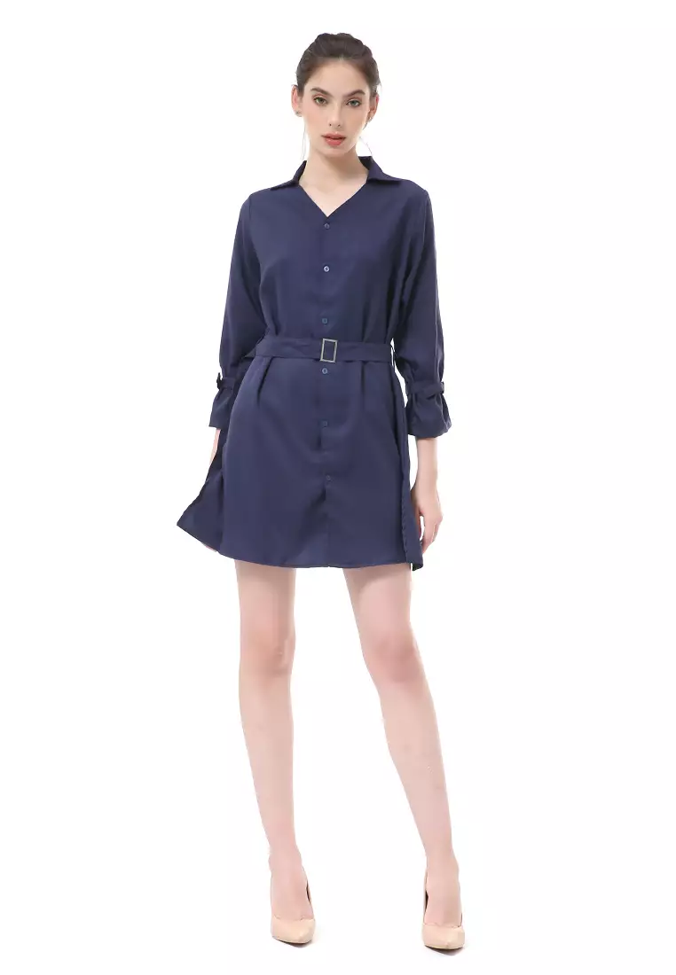 HamlinRachel Dress Wanita Model Kemeja Long Sleeve with Belt Material Mosscrepe ORIGINAL - Navy2057500.00823000.00