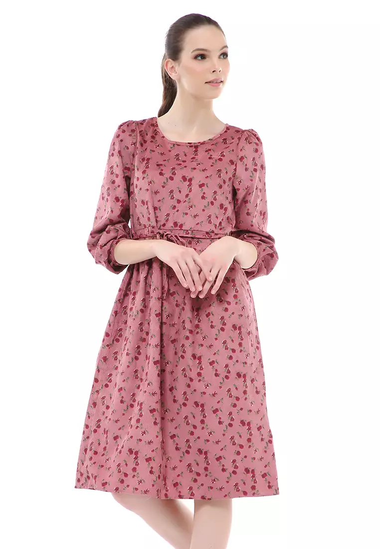 HamlinRachel Dress Wanita Motif Bunga Elegant Design Long Sleeve Material Flanel ORIGINAL - Red2007500.00803000.00