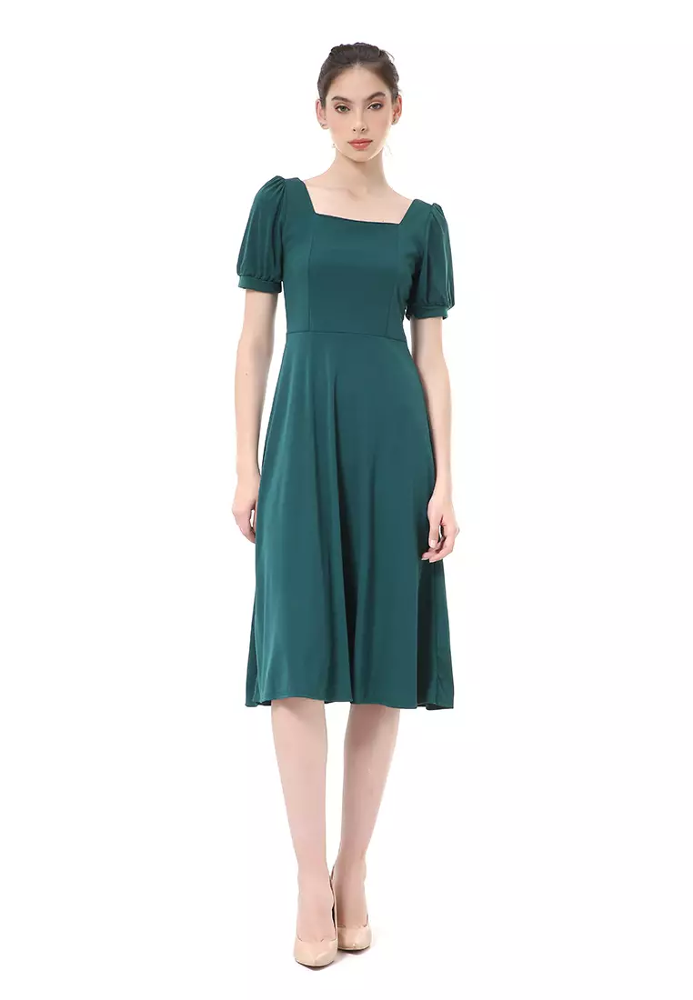 Rachel Long Dress Wanita Lengan Pendek Motif Polos Material Cotton ORIGINAL - Green