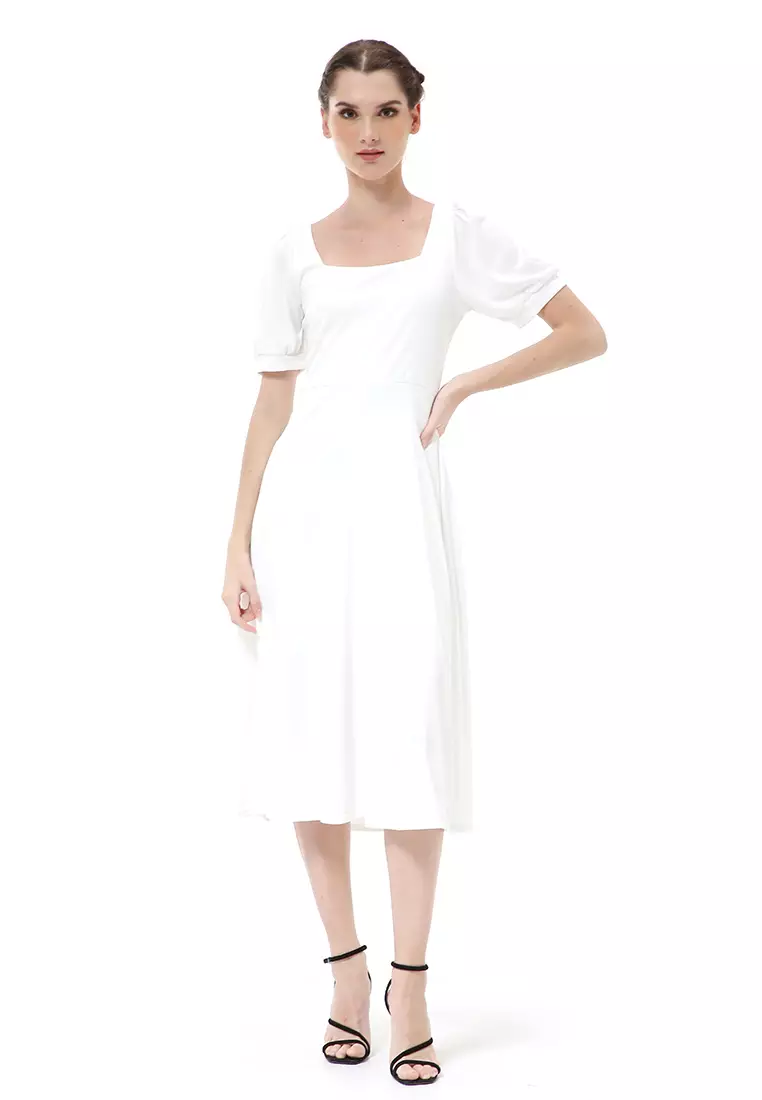 Rachel Long Dress Wanita Lengan Pendek Motif Polos Material Cotton ORIGINAL - White