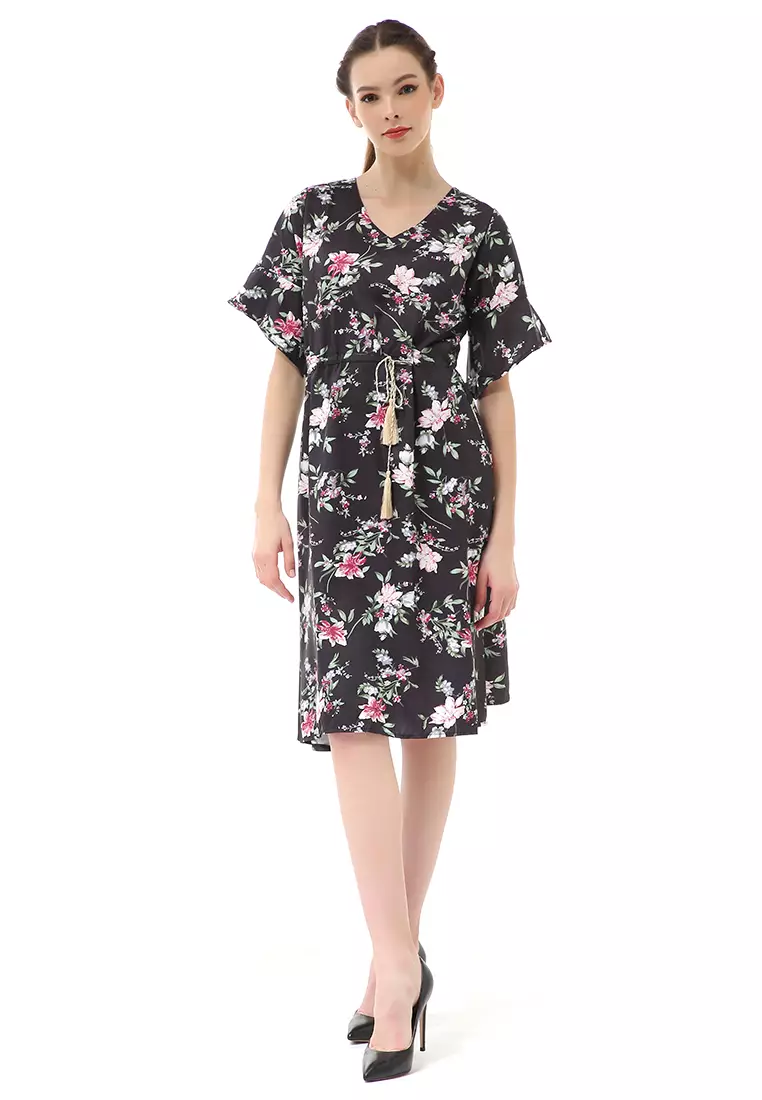 HamlinRachel Midi Dress Wanita Karet Pinggang Short Sleeve Floral Motif Material Polyester ORIGINAL - Black2105000.00842000.00