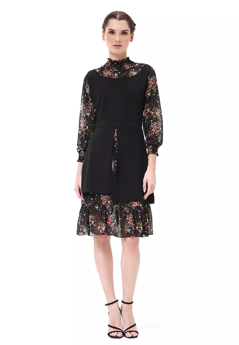 HamlinRachel Midi Dress Wanita Lengan Panjang Turtleneck Material Cotton ORIGINAL - Black2180000.00872000.00
