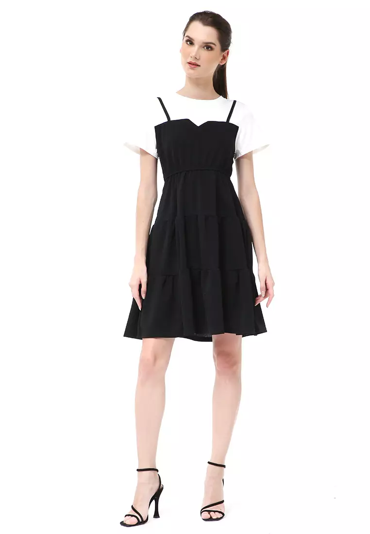 HamlinRachel Midi Dress Wanita Lengan Pendek Model Menyatu Korean Style Material Cotton ORIGINAL - Black2115000.00846000.00