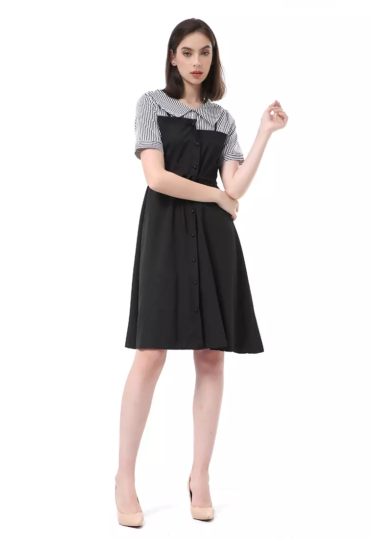 HamlinRachel Midi Dress Wanita Lengan Pendek Vintage Design Tali Pinggang Material Cotton ORIGINAL - Black2145000.00858000.00