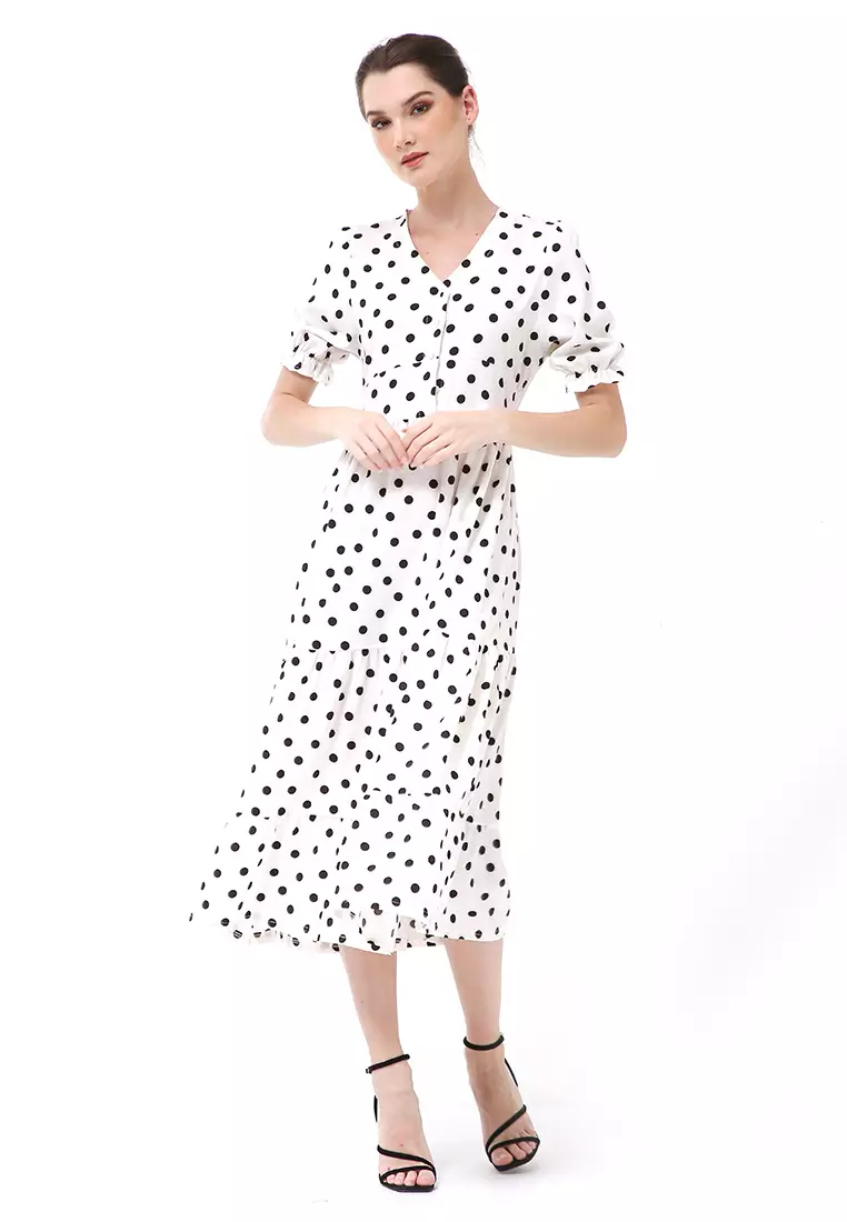 HamlinRachel Midi Dress Wanita Vneck Lengan Pendek Desain Karet Material Polyester ORIGINAL - White2135000.00854000.00