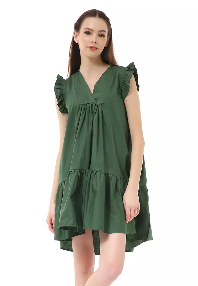 Rachel Mini Dress Ruffle Wanita Lengan Pendek Motif Polos Material Cotton ORIGINAL - Forest Green