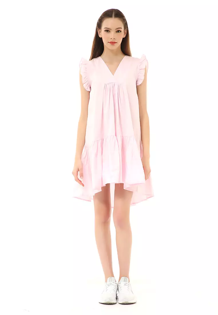 Rachel Mini Dress Ruffle Wanita Lengan Pendek Motif Polos Material Cotton ORIGINAL - Soft Pink