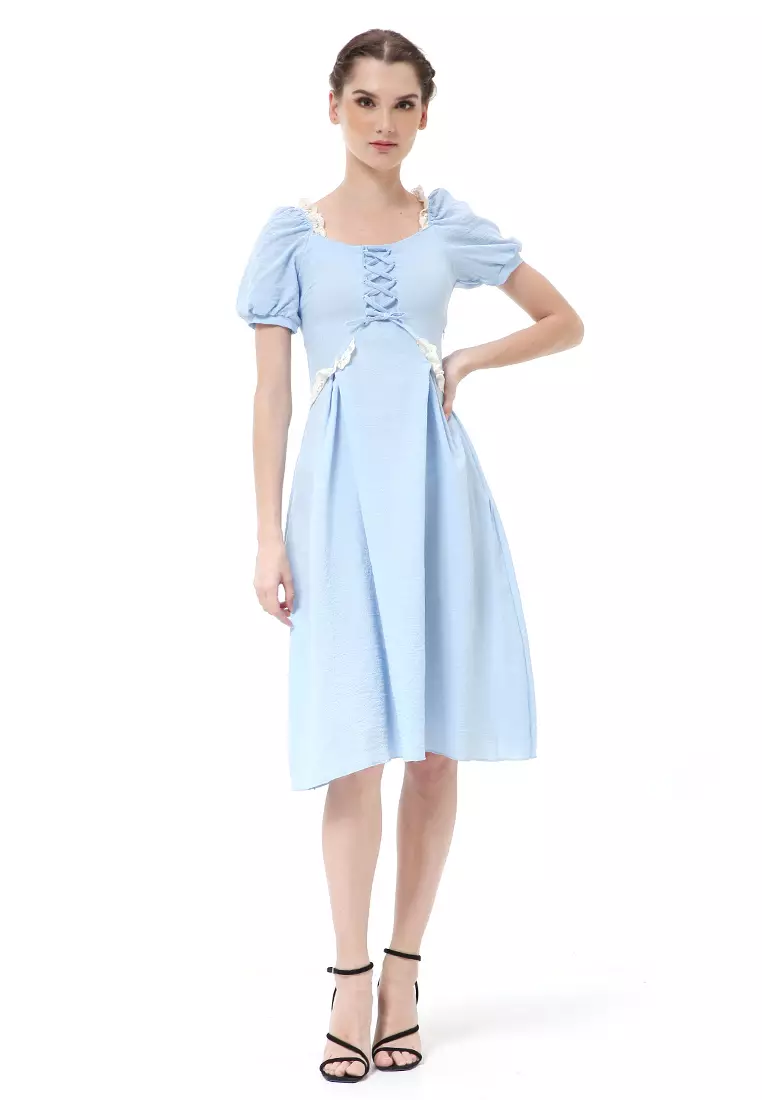 Rachel Slim Dress Wanita Model A-line Lengan Pendek Material Cotton ORIGINAL - Blue