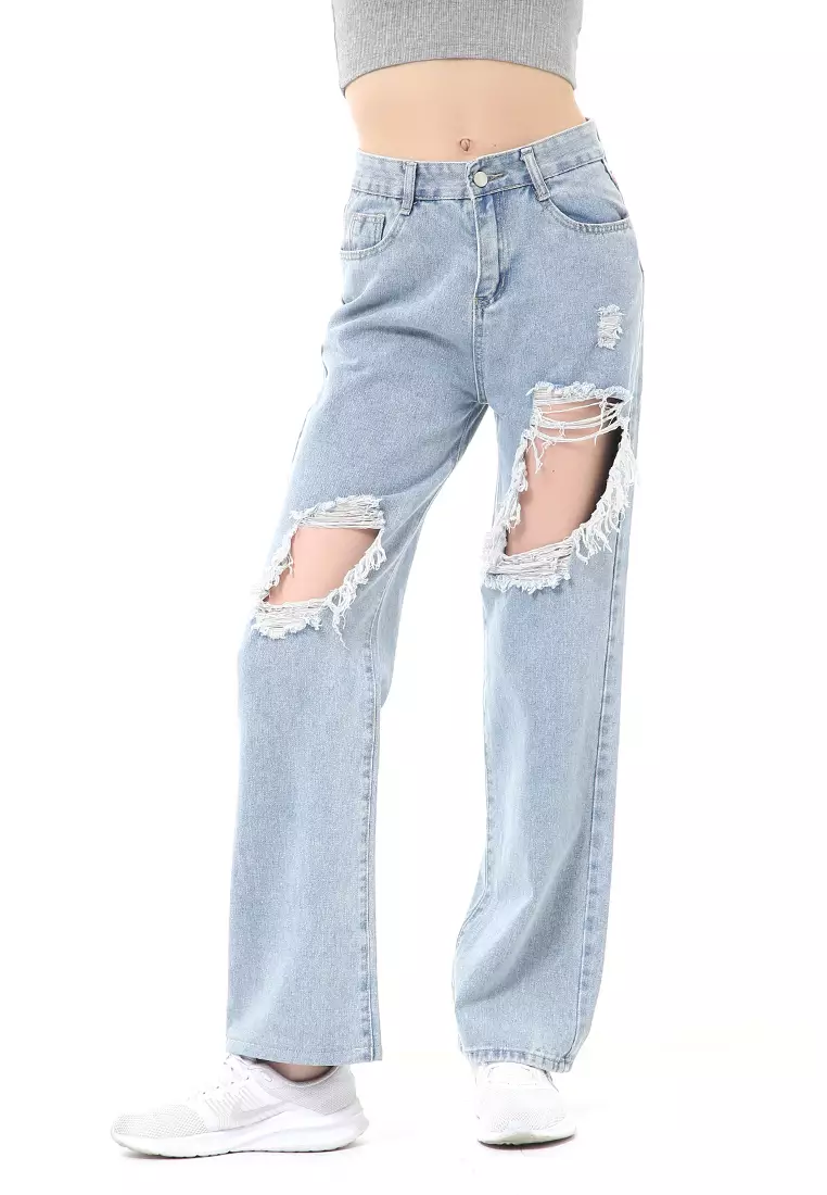 HamlinStella Highwaist Baggy Ripped Jeans Wanita Long Pants Desain Sobek Material Denim ORIGINAL - Blue2105000.00842000.00