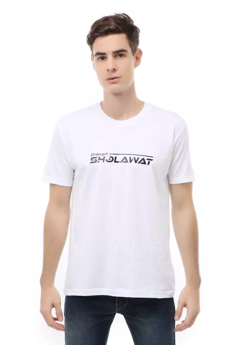 T-Shirt Atasan Kasual Pria Shalawat Lengan Pendek Material Cotton ORIGINAL - White