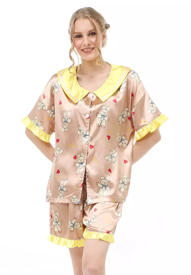 HamlinVance Setelan Baju Tidur Wanita Lengan Pendek Motif Coco Bear Material Satin ORIGINAL - Yellow2002000.00801000.00