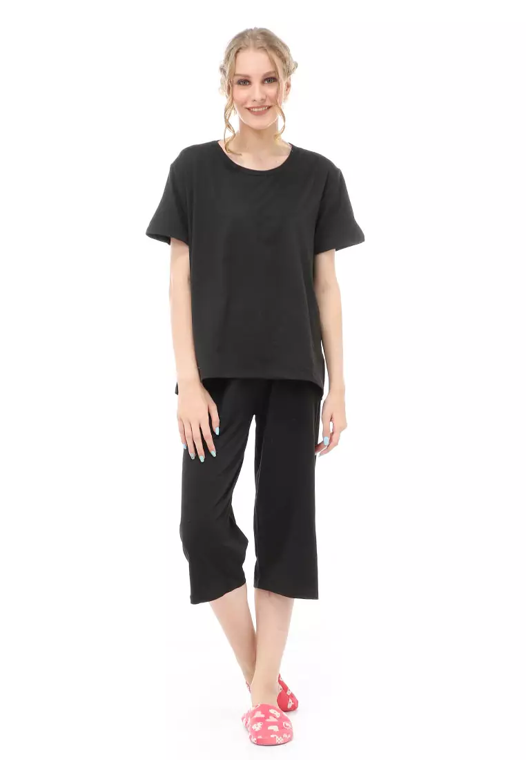 Vance Setelan Piyama Baju Tidur Wanita Celana Pendek 7/8 Material Spandex ORIGINAL - Black
