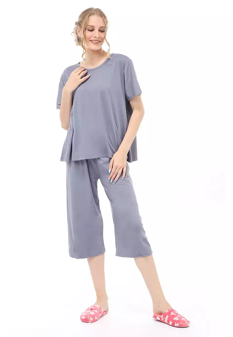 HamlinVance Setelan Piyama Baju Tidur Wanita Celana Pendek 7/8 Material Spandex ORIGINAL - Gray1377500.00551000.00