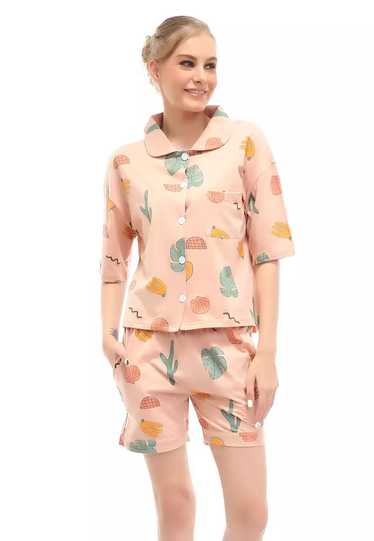 HamlinVance Setelan Piyama Baju Tidur Wanita Celana Pendek Hotpant Motif Cactus Material Spandex ORIGINAL - Pink1340000.00536000.00