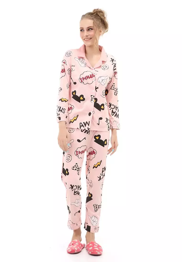 HamlinVance Setelan Piyama Baju Tidur Wanita Lengan Panjang Motif Petir Material Cotton ORIGINAL - Pink1430000.00572000.00